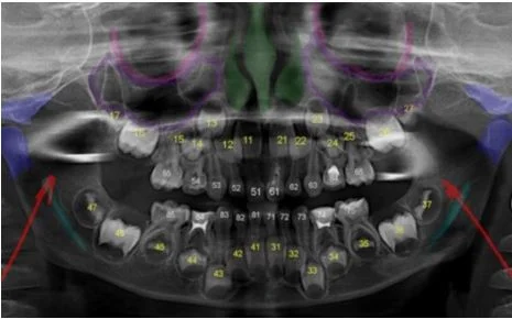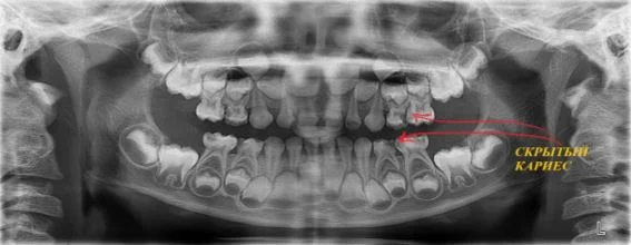 В детской стоматологии обойтись без рентгена невозможно. Под корнями молочных зубов располагаются зачатки постоянных зубов, и прежде чем начинать их лечение, необходимо убедиться, что корни молочных зубов не начали рассасываться, и что проводимое лечение не повредит зачаткам постоянных зубов.