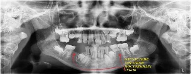 В детской стоматологии обойтись без рентгена невозможно. Под корнями молочных зубов располагаются зачатки постоянных зубов, и прежде чем начинать их лечение, необходимо убедиться, что корни молочных зубов не начали рассасываться, и что проводимое лечение не повредит зачаткам постоянных зубов.