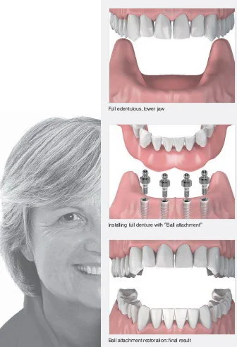 4.Имплантация зубов позволяет изготовить несъемные конструкции даже на полностью беззубой челюсти. Съемный протез с опорой на зубные имплантаты на порядок лучше фиксируется по сравнению с обычным съемным протезом и обеспечивает оптимальную жевательную функцию, в чем и нуждается пациент с беззубой челюстью. Преимущества съемных протезов на имплантатах: